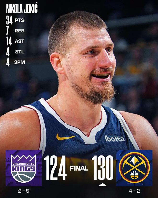 约基奇34+14威少26+12 掘金胜国王