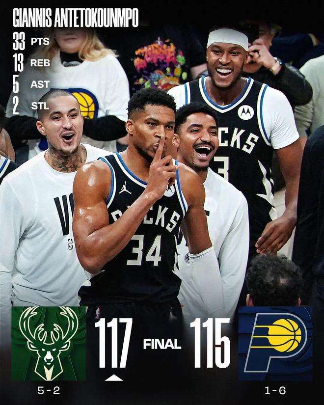 字母33分压哨绝杀 雄鹿胜步行者